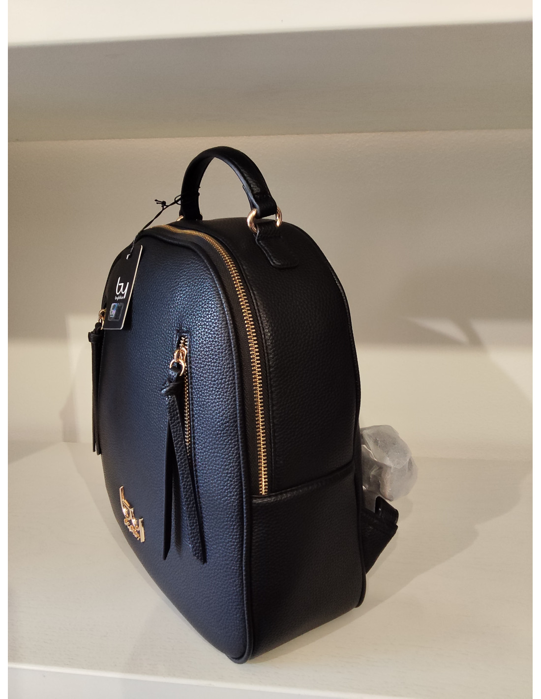 Zaino bybyblos nero e cuoio in ecopelle martellato